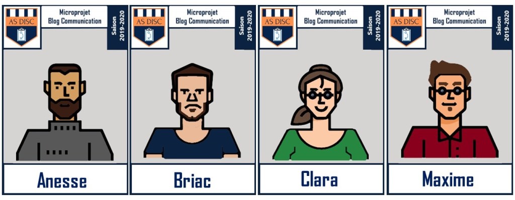 C’est donc tout naturellement que ce blog a vu le jour, tenu par nous quatre : Anesse, Briac, Clara et Maxime, étudiants en Master 1 DISC depuis septembre 2019.